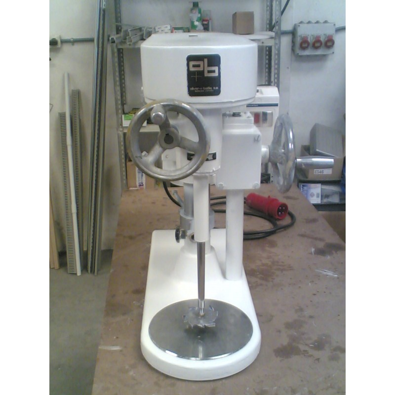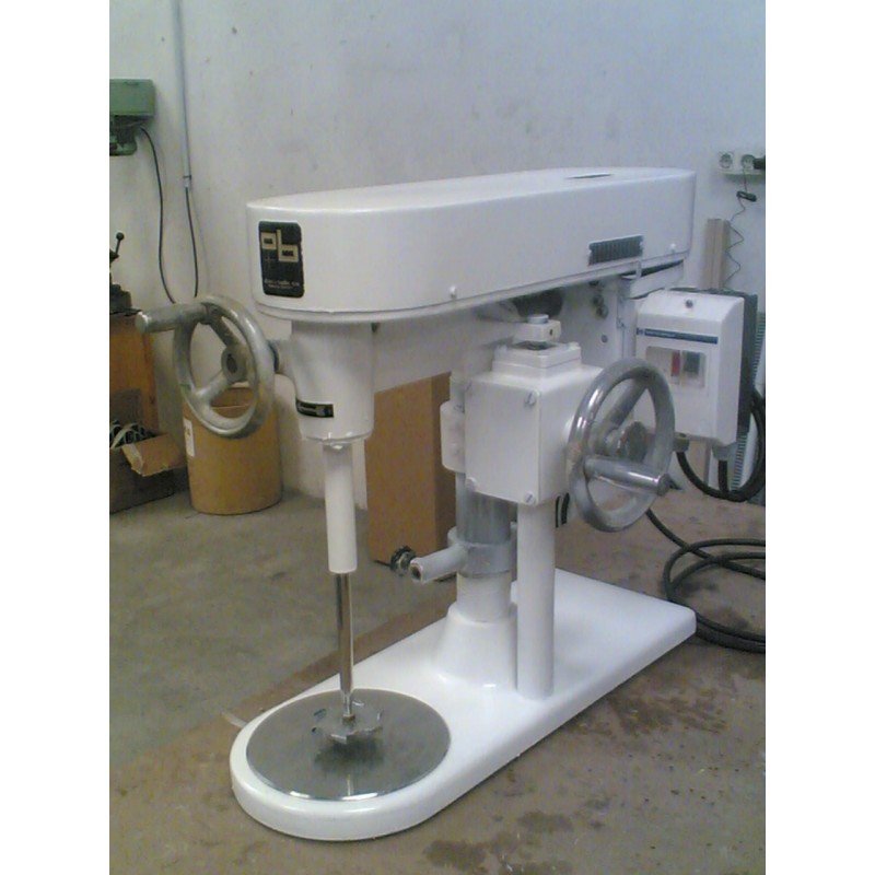 Agitador dispersor de laboratorio de 1.4CV de potencia con variación continua de velocidad, sujeción del deposito y elevación/descenso del cabezal mediante volante.