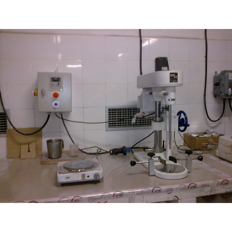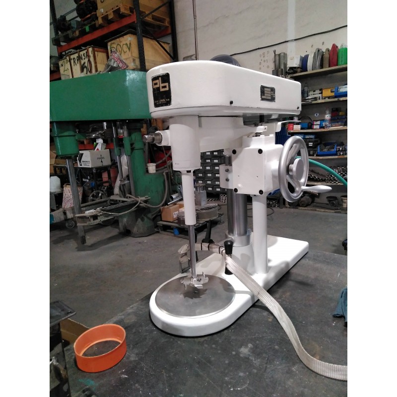 Agitador dispersor de laboratorio de 1.4CV de potencia con variación eléctrica de velocidad, sujeción del deposito y elevación/descenso del cabezal mediante volante.