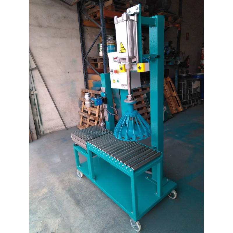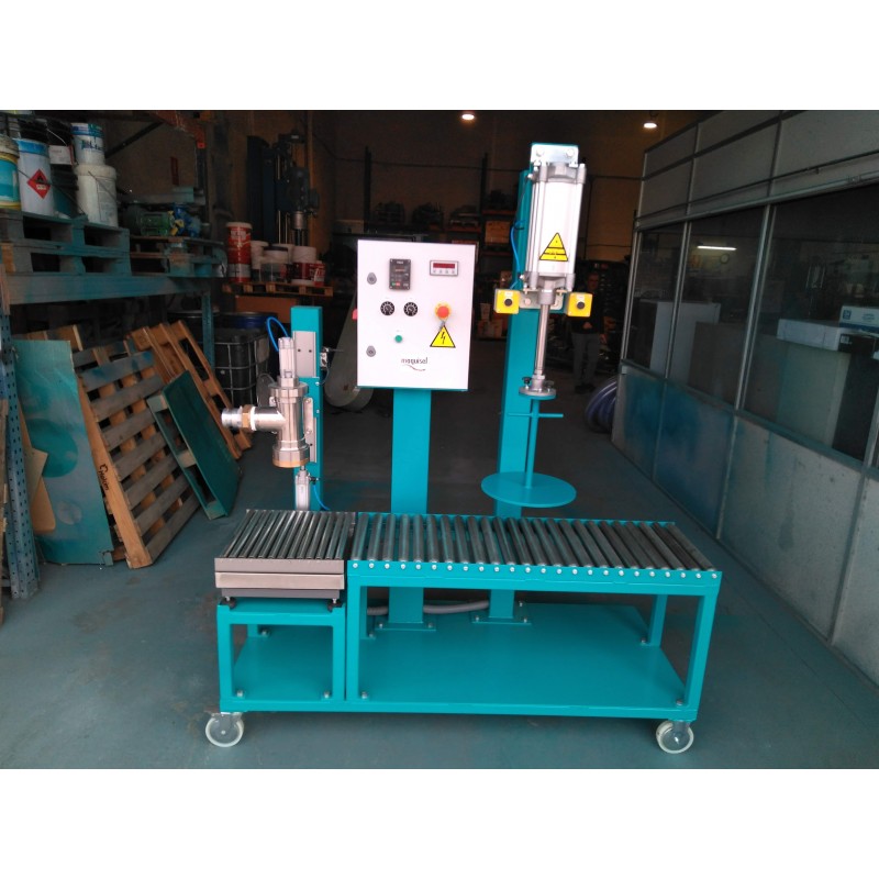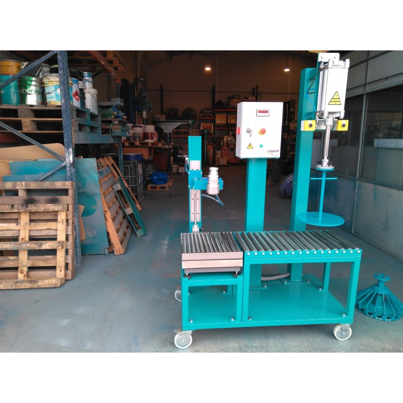 Envasadora semi-automatica con llenado por gravedad para botes de 5 a 25 Litros. Cerrador automático.