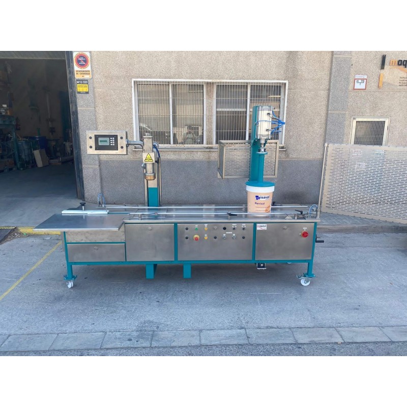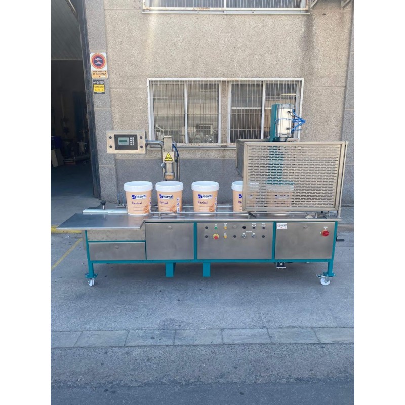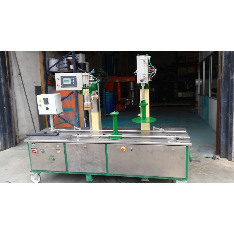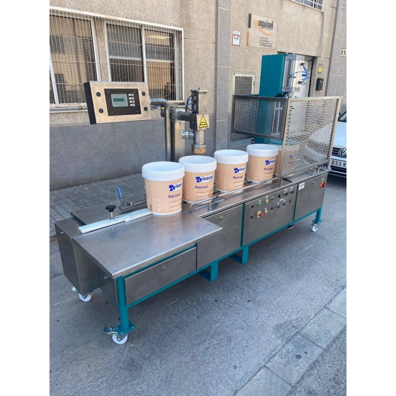 Envasadora Gravimétrica marca Barrios, modelo BXP10 diseñada para el llenado de envases metálicos y de plástico de boca ancha. Este tipo de envasadora trabaja con una potencia de 4CV, y una tensión 220-380V